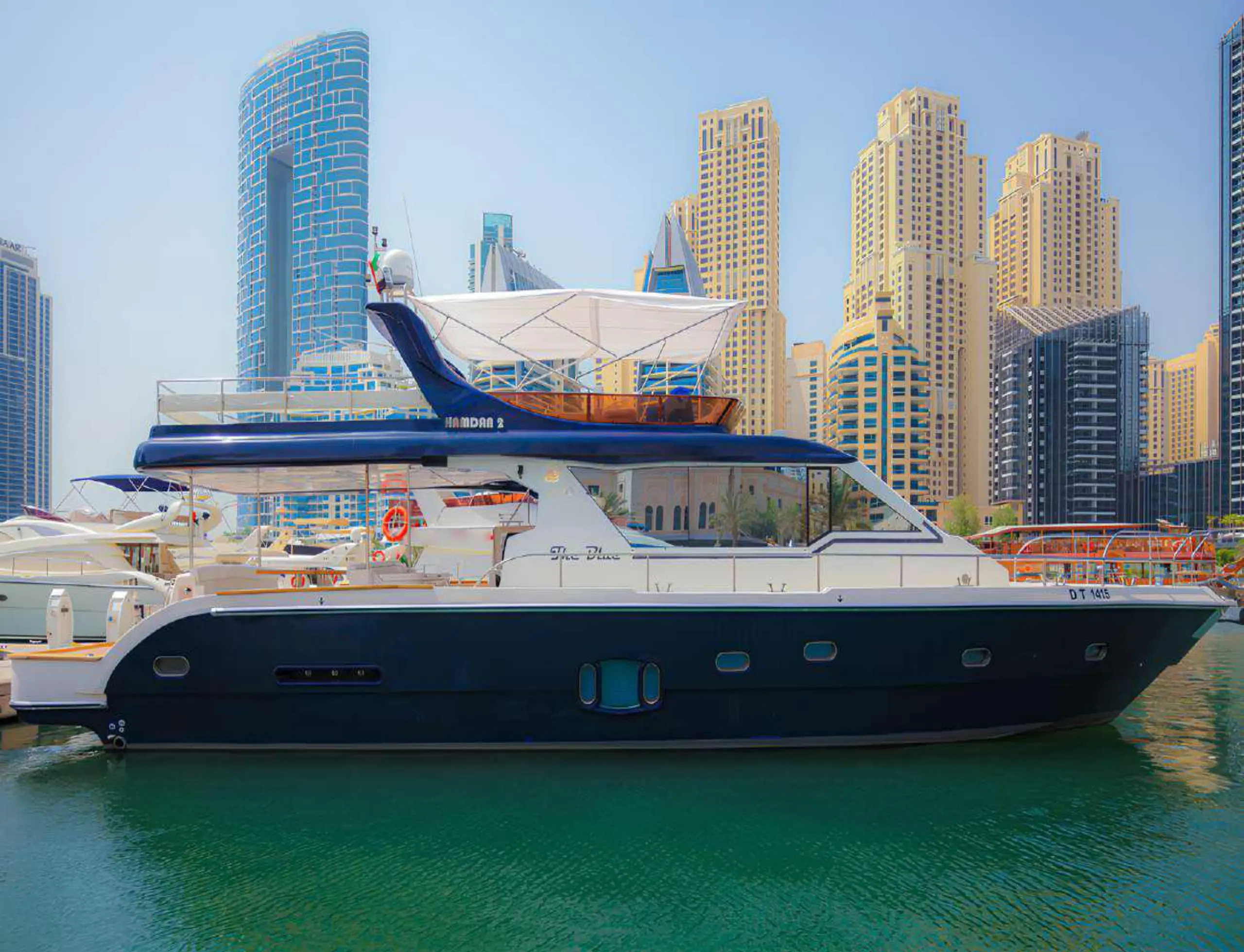 Enjoy a premium yacht experience on our spacious 65 Ft yacht, perfect for groups of up to 23 guests. This 1-hour private cruise is ideal for sightseeing, family gatherings, birthdays, and small events. Relax on the large deck, enjoy fresh sea air, and capture stunning photos of Dubai Marina’s skyline. The yacht is clean, well-maintained, and designed for comfort and smooth sailing. Our professional captain and friendly crew, along with a multilingual guide speaking English, Tamil, and Hindi, ensure a safe and enjoyable journey. Boarding is from Dubai Marina with full safety measures in place.